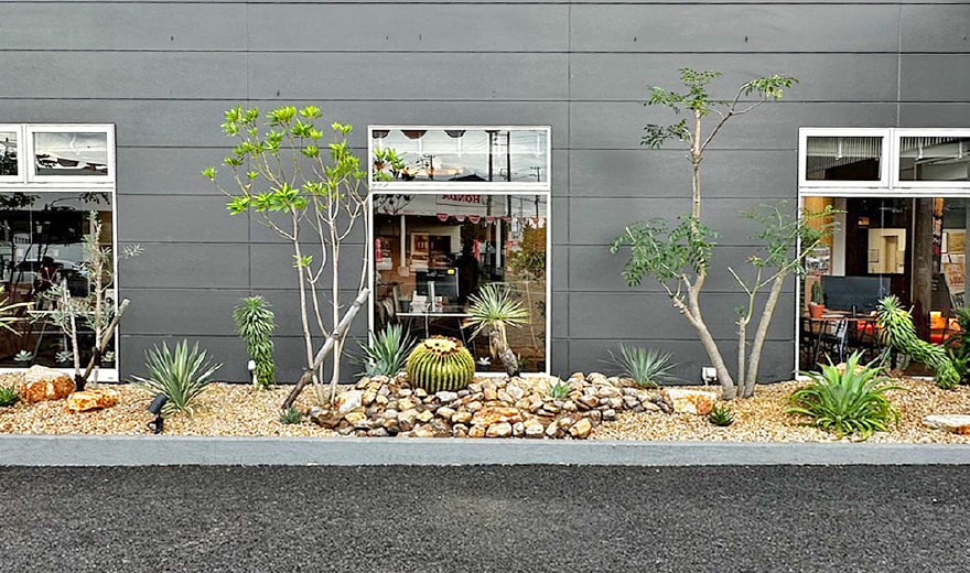 - はい、庭史は植栽に強い造園ブランドとして、お客様のご希望に合わせた植物のご提案や入れ替えも得意としています。ドライガーデンや人気のオリーブなどもおまかせください。