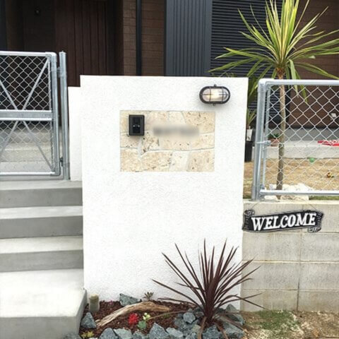 愛知県名古屋市南区にて、門柱・花壇・植栽を中心としたカリフォルニアスタイルの外構工事を行いました。