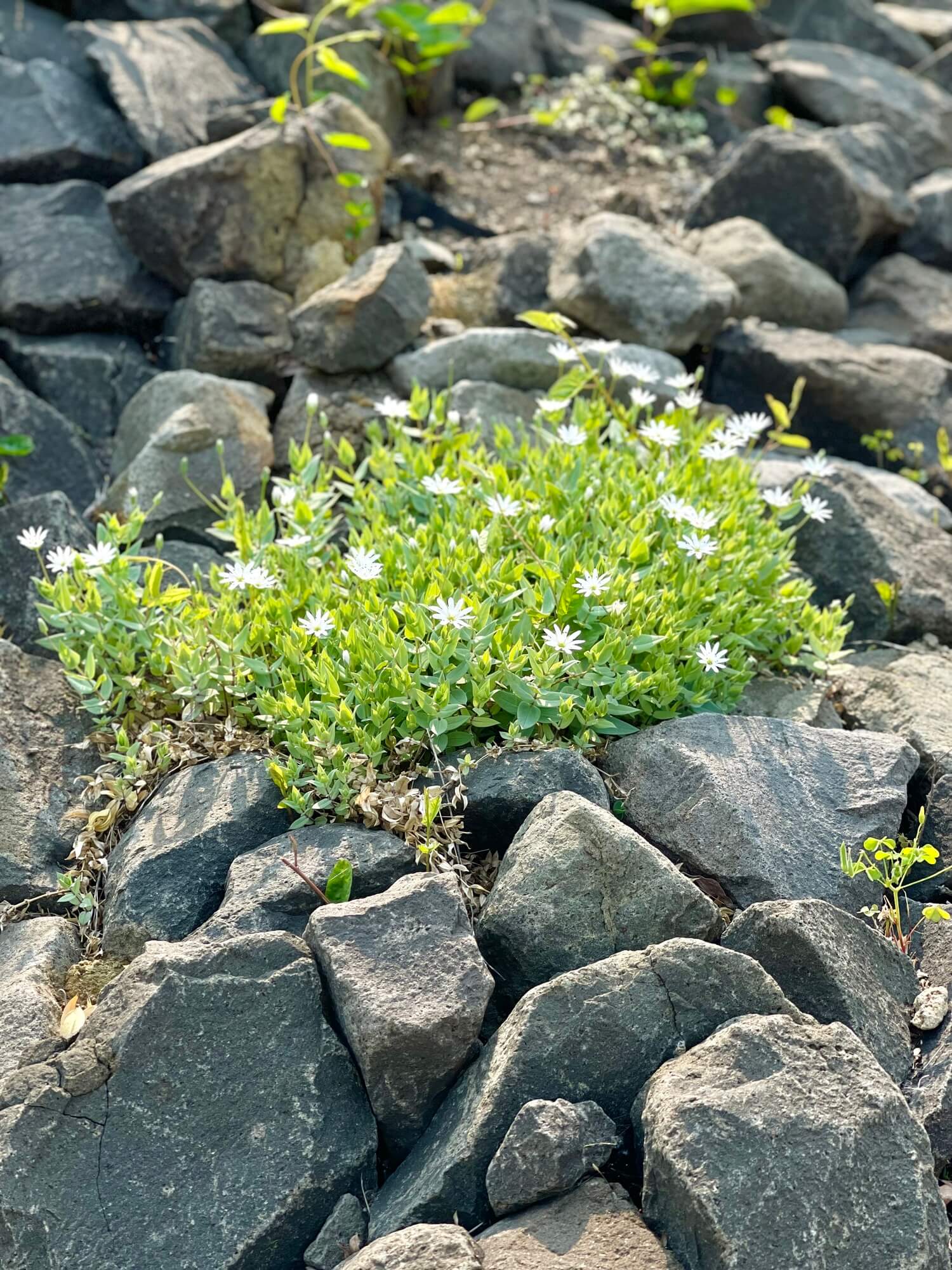 石のあいだに草花やグラウンドカバーを植えることで、四季の移ろいを感じられるのが魅力。