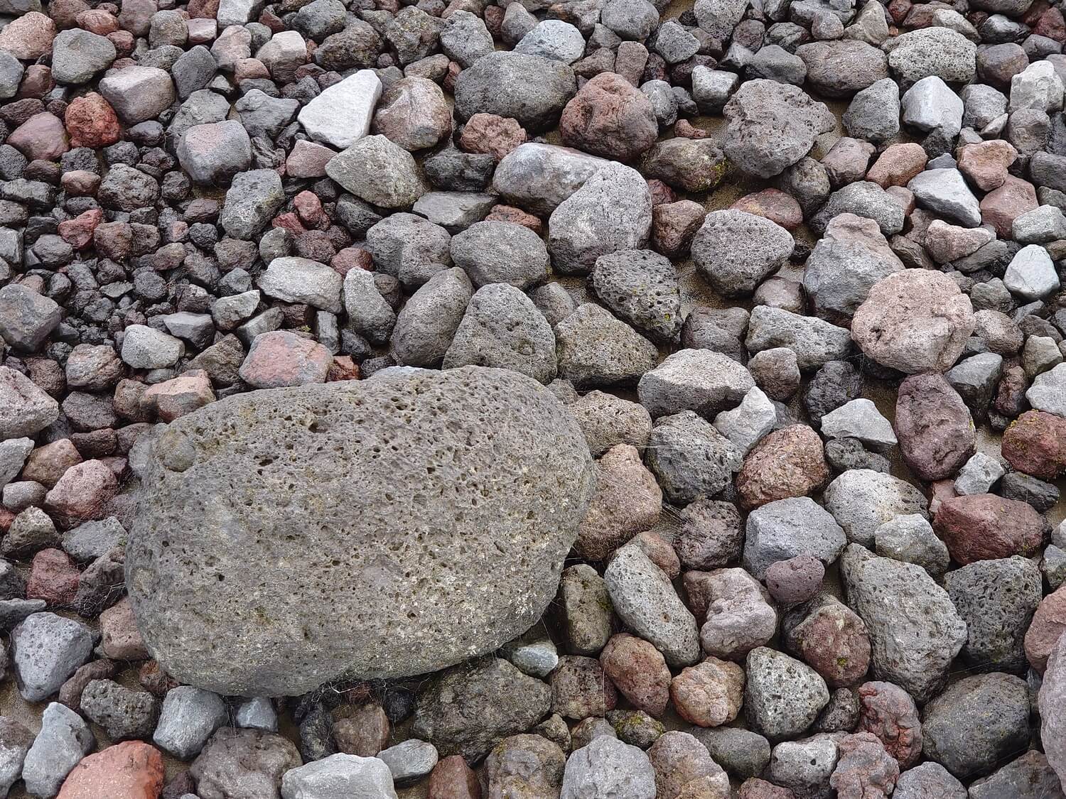 実際の山や河原にある石は、決して均等ではなく大小の石がリズムよく混在しています。