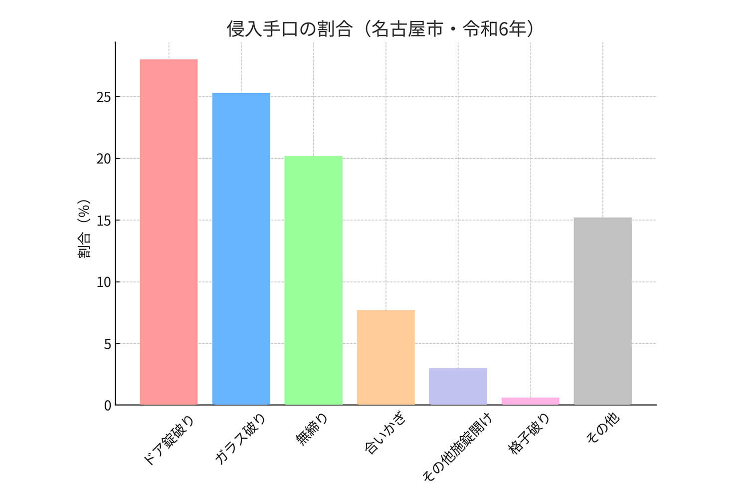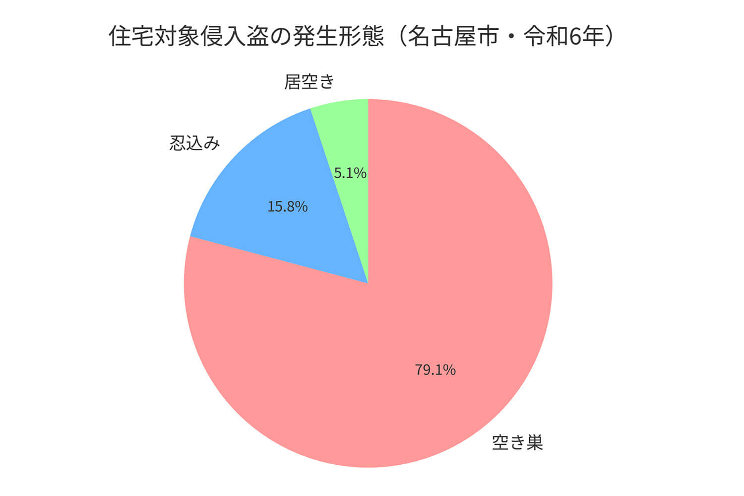 名古屋市における住宅対象侵入盗の内訳(令和6年)。