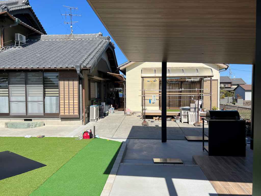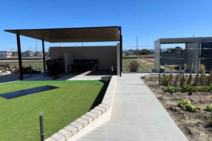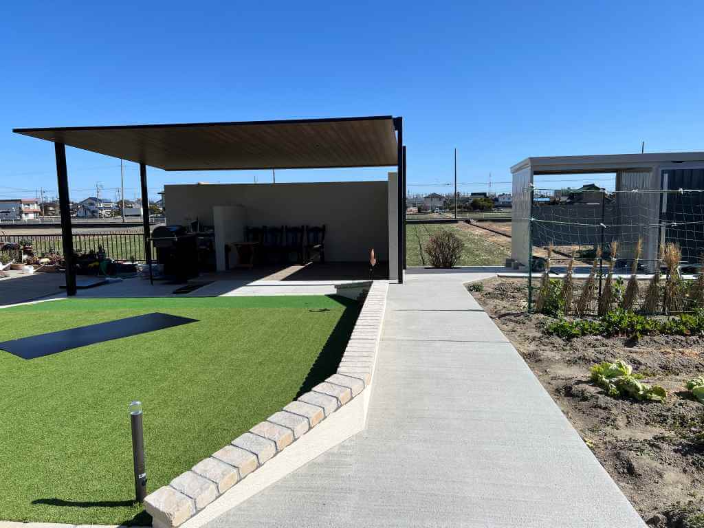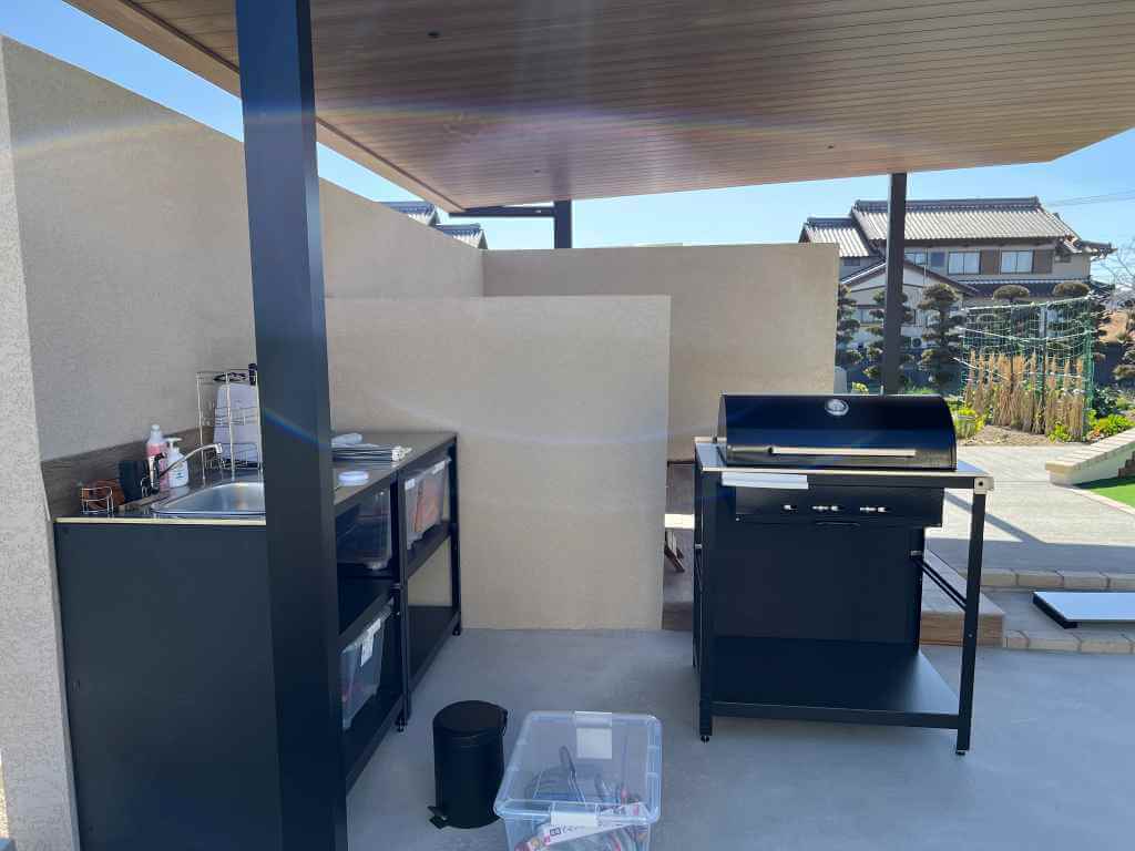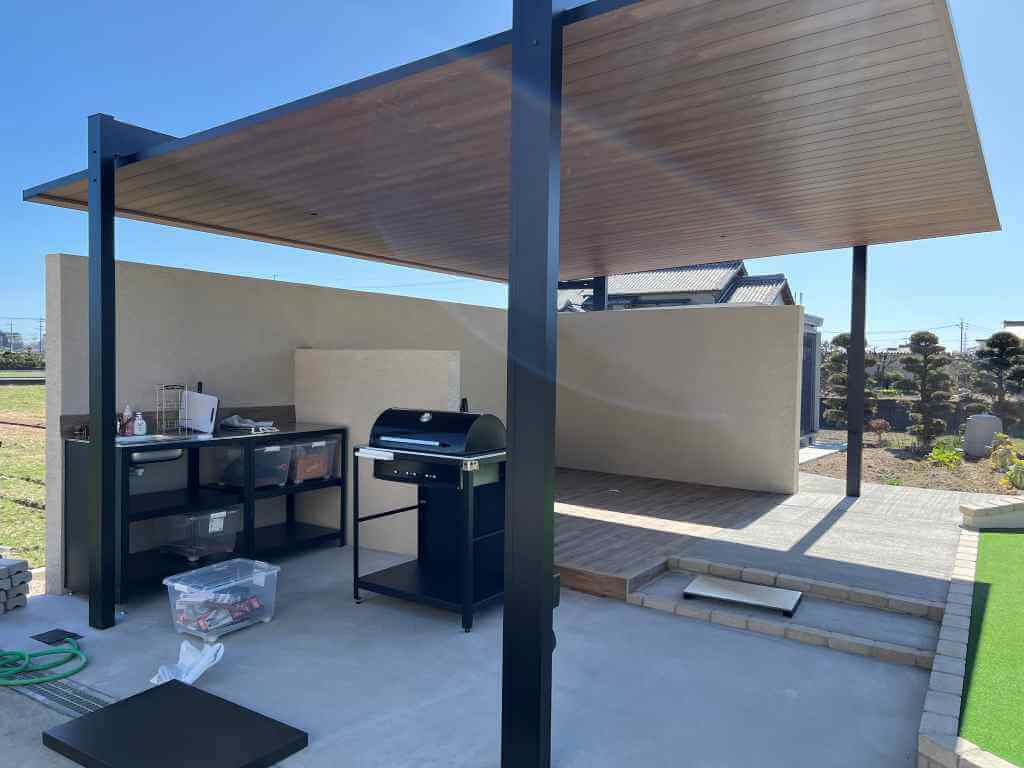 2台用カーポートを活用したBBQゾーン。