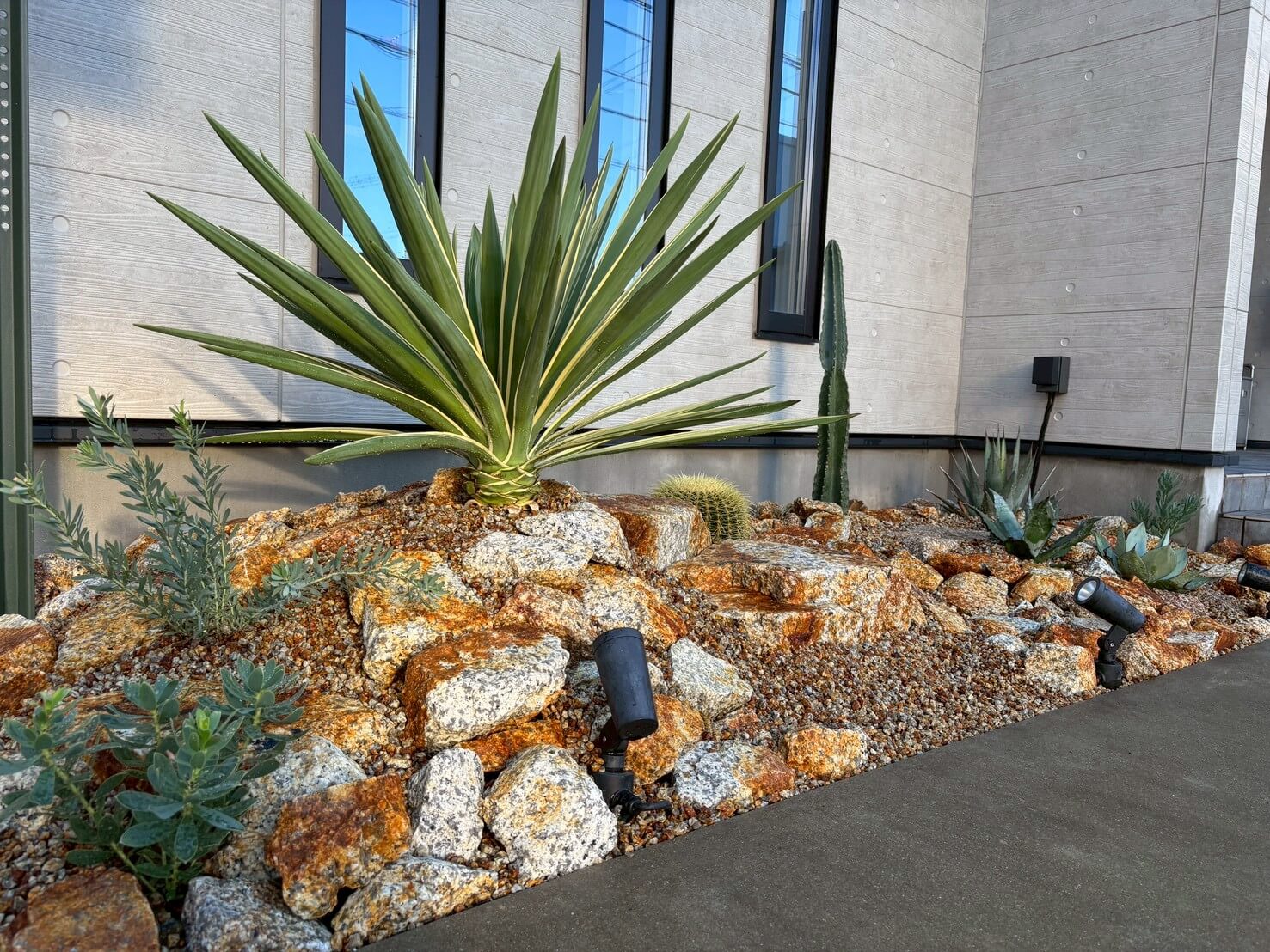 ドライガーデンに枯山水の要素を取り入れ
